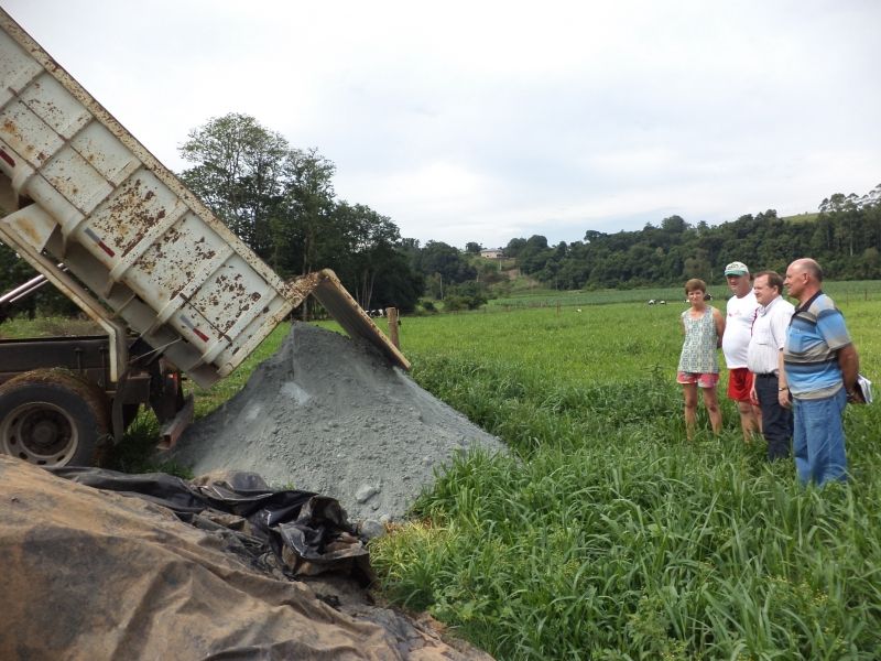 A Secretaria de Agricultura está trabalhando na distribuição de calcário, cloreto de potássio, super fosfato triplo e composto orgânico para correção dos solos nas propriedades rurais inscritas no Programa de Implantação e Renovação de Pastagens Permanentes. A ação faz parte do contrato assinado em janeiro deste ano no Ministério da Agricultura, Pecuária e Abastecimento (MAPA), onde a administração municipal garantiu a captação de R$ 100 mil em recursos para os produtores do município, por meio do Programa de Correção de Solo. Ao todo está prevista a implantação de 150 hectares de pastagens permanentes, beneficiando cerca de 50 produtores inscritos. Cada propriedade recebe o material necessário de acordo com análise técnica realizada pela Emater. O Prefeito Sidnei Eckert e o Secretário de Agricultura, Valmir Rauber acompanharam essa semana a distribuição do material na propriedade do casal Telmo e Clair Hentges, de Forqueta Baixa. Com 23 vacas leiteiras, das quais 17 em lactação, o casal trabalha sob uma perspectiva positiva, registrando mais de 100% de aumento da produção leiteira desde 2010, quando a meta inicial era de 50 mil litros de leite e o registro final foi próximo de 60 mil. –Em 2011 projetamos 72 mil litros e quase atingimos a marca dos 100 mil. Este ano nossa meta era de 120 mil, mas devemos chegar a 130 e para 2013 queremos alcançar a marca dos 150 mil litros–, projeta o produtor. Além do gado leiteiro, o casal também cria 500 suínos. –A principal vantagem da pastagem permanente é a economia que fazemos no trato e na mão de obra, já que temos pasto pros animais praticamente o ano inteiro–, explica Hentges. Rauber afirma que esta é uma das iniciativas de incentivo da administração municipal em prol do setor primário. –Buscamos este e outros recursos junto aos Governos Federal e Estadual, visando aprimorar o setor primário, através de subsídios capazes de melhorar as condições de trabalho e a renda do produtor rural–, explica o Secretário. Legenda: Prefeito Sidnei Eckert e Secretário de Agricultura Valmir Rauber acompanham a distribuição de calcário na propriedade do casal Telmo e Clair Hentges, de Forqueta Baixa. Fotos: Maica Viviane Gebing Texto: Assessoria de Imprensa