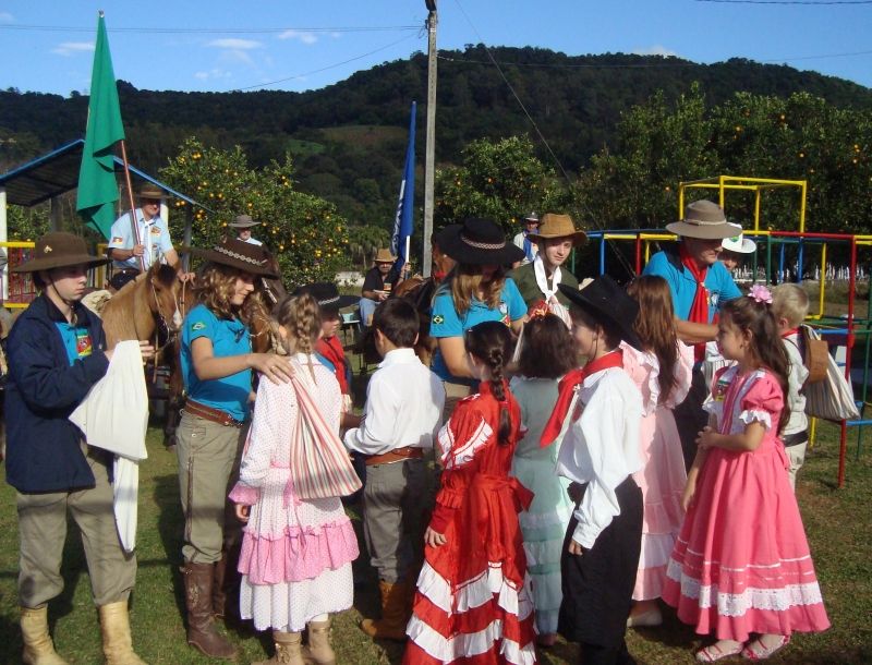 Integrando a agenda do projeto Biblioteca Itinerante Mala de Garupa, a Escola Municipal de Ensino Fundamental (EMEF) Duque de Caxias e a comunidade de Arroio Grande receberam na manhã desta terça-feira, dia 14, o grupo de cavalarianos que fizeram a entrega das malas de garupa no educandário. A comitiva, uma das maiores desde o inicio do projeto, contou com cavalarianos do CTG Querência do Arroio do Meio, Brigada Militar, pais e alunos da escola, que foram recebidos com apresentações e chimarrão por alunos, professores, pais, avós e comunidade. O acervo literário e audiovisual permanecerá à disposição da comunidade local para leitura e pesquisa até a próxima sexta-feira, dia 24. Na noite da quinta-feira, dia 23, ocorre a 4º Tertúlia de Integração, que contará com a presença do Coral Municipal, apresentações locais e encerramento com a invernada do CTG Querência do Arroio do Meio. Na última sexta-feira, dia 10, a EMEF Dona Rita realizou a sua Tertúlia de Integração, que contou com grande participação comunitária. Na oportunidade, os alunos cantaram, encenaram e dançaram, fruto das atividades desenvolvidas durante o projeto. Na oportunidade, apresentaram-se também o Coral Concórdia de Palmas, talentos individuais, Grupo de Idosos e instrumentistas. O fechamento da noite ficou por conta da alegria é animação dos peões e prendas do CTG Querência. O projeto Biblioteca Itinerante Mala de Garupa foi idealizado pela coordenadora cultural do CTG Querência, Regina Izabel Rodrigues, e tem na coordenação e execução esta entidade tradicionalista. Com recursos do Prêmio Empreendedor Cultural, o projeto realizará sete itinerâncias durante o semestre, contemplando as comunidades de Rui Barbosa, Forqueta, Dona Rita, Arroio Grande, São Caetano, Aimoré e Barra do Forqueta. O projeto conta com o apoio da Administração Municipal, Brigada Militar e Núcleo Municipal de Cultura. Legenda: Cavalarianos levam as malas de garupa repletas de livros para alunos das escolas. Fotos: Angélica Diefenthaler Texto: Assessoria de Imprensa
