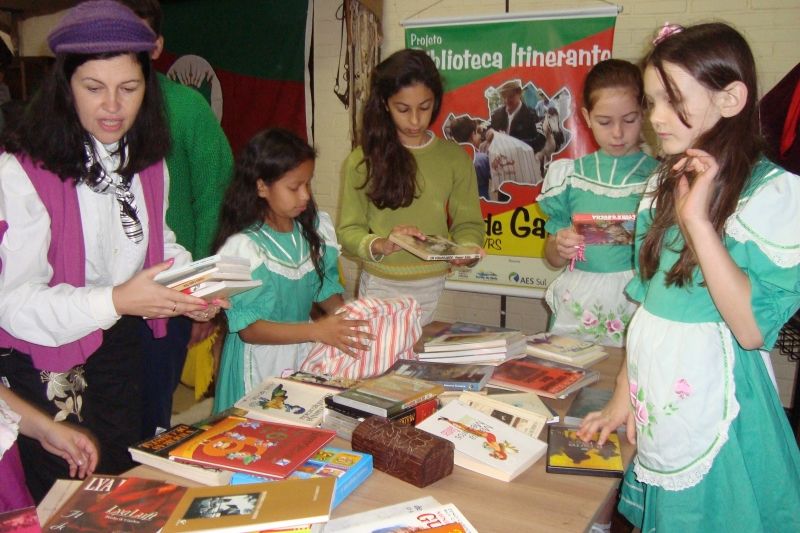 Integrando a agenda do projeto Biblioteca Itinerante Mala de Garupa, a Escola Municipal de Ensino Fundamental (EMEF) São Caetano recebeu na manhã desta terça-feira, dia 28, o grupo de cavalarianos que fizeram a entrega das malas de garupa no educandário. A comitiva foi recepcionada ao som de gaita, violão e versos apresentados por alguns alunos. O acervo literário e audiovisual permanecerá à disposição da comunidade local para leitura e pesquisa por 15 dias, encerrando na próxima sexta-feira, 7 de junho, com mais uma Tertúlia de Integração. A 5º edição do evento inicia às 19h30min no auditório da escola e contará com a presença do Coral Concórdia de São Caetano, apresentações da escola e de talentos da comunidade, encerrando com animação dos peões e prendas do CTG Querência. Na última quinta-feira, dia 25, ocorreu em Arroio Grande a 4º Tertúlia de Integração, com expressiva participação comunitária. Na oportunidade, apresentaram-se o Coral Municipal, os alunos da EMEF Duque de Caxias, talentos locais, CTG Herança Nativa e a invernada do CTG Querência do Arroio do Meio. O projeto Biblioteca Itinerante Mala de Garupa foi idealizado pela coordenadora cultural do CTG Querência, Regina Izabel Rodrigues, e tem na coordenação e execução esta entidade tradicionalista. Com recursos do Prêmio Empreendedor Cultural, o projeto realizará sete itinerâncias durante o semestre, contemplando as comunidades de Rui Barbosa, Forqueta, Dona Rita, Arroio Grande, São Caetano, Aimoré e Barra do Forqueta. O projeto conta com o apoio da Administração Municipal, Brigada Militar e Núcleo Municipal de Cultura. Legenda: Malas de garupa foram entregues à comunidade escolar de São Caetano, contendo cerca de 140 obras literárias e nove conjuntos audiovisuais. Fotos: Divulgação Texto: Assessoria de Imprensa