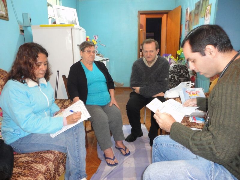 Visando acompanhar a rotina e as necessidades das famílias e repassar dicas de saúde preventiva para a comunidade, a equipe de profissionais da Secretaria Municipal da Saúde semanalmente realiza atendimentos domiciliares, dando prioridade para pacientes acamados, idosos e pessoas com dificuldade de locomoção. Durante as visitas são avaliados os cuidados com pacientes acamados, pós-cirúrgicos, verificação de pressão arterial, glicose, curativos, sondagens e acompanhamento de pacientes com câncer, com o objetivo de minimizar o sofrimento. Os atendimentos são realizados por médicos, enfermeiros e técnicos de enfermagem responsáveis pela unidade de Estratégia de Saúde da Família (ESF) da área de abrangência do paciente. De acordo com a Secretária de Saúde, Maria Helena Matte, o agendamento das consultas ocorre a partir do trabalho realizado pelas agentes de saúde, que rotineiramente visitam as famílias, atuando de forma preventiva na saúde da comunidade, acionando a equipe quando necessário. –As agentes estão em contato direto com os pacientes, conhecem as condições de saúde, higiene, relacionamento e costumes em que vivem, e por isso auxiliam de forma importante no trabalho da equipe de saúde nos atendimentos–, explica a Secretária. O Prefeito Sidnei Eckert afirma que uma das prioridades da administração municipal é garantir a saúde e a valorização da vida de todos, humanizando e qualificando os atendimentos na área. –Nos preocupamos com o bem estar da comunidade como um todo, dando esta atenção aos pacientes acamados, que precisam de cuidados especiais para sua recuperação–, afirma Eckert. Os atendimentos também podem ser agendados diretamente por familiares nas ESF de abrangência de cada área. Legenda: Prefeito acompanha atendimento domiciliar da equipe de saúde à paciente do bairro Novo Horizonte. Fotos: Maica Viviane Gebing Texto: Assessoria de Imprensa