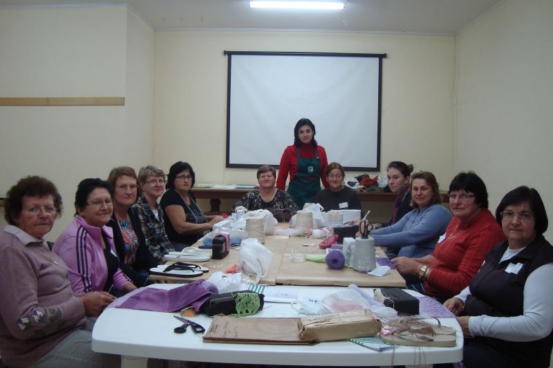 Com o objetivo de qualificar e incrementar o artesanato local, a administração municipal, por meio do Departamento de Cultura e Turismo, realizou essa semana, de 09 a 12 de julho, o curso de Macramê, ministrado pela instrutora do Serviço Nacional de Aprendizagem Rural (SENAR), Marcia Maciel, de Pelotas. O Macramê é uma técnica de tecer fios manualmente, sem o uso de qualquer maquinário ou ferramenta. As alunas Sueli Teloken, de Arroio Grande e Etel Hachtel, de Forqueta aprovaram a oportunidade. –Foi nosso primeiro curso de artesanato, no início achamos difícil porque não temos prática com o manuseio dos fios, mas fomos vencendo as dificuldades e estamos gostando muito", destacam com alegria as participantes. Os cursos oferecidos pela administração municipal e SENAR são gratuitos e conferem certificados aos participantes. Voltados preferencialmente aos trabalhadores e produtores rurais, visam contribuir para a profissionalização, integração na sociedade, melhoria da qualidade de vida e pleno exercício da cidadania destes cidadãos. A iniciativa conta com a parceria do Sindicato dos Trabalhadores Rurais de Lajeado. Legenda: Onze alunas participaram do curso gratuito de macramê. Fotos: Angélica Diefenthaler Texto: Assessoria de Imprensa