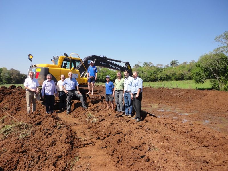 Foi executado na última semana um açude de mil metros quadrados na propriedade de Milton Dullius, em Arroio Grande. O açude que será utilizado para a criação de peixes, é o quarto executado esse ano no município, por meio dos programas Irrigando a Agricultura Familiar e RS Pesca e Aquicultura, da Secretaria de Desenvolvimento Rural, Pesca e Cooperativismo (SDR). Ao todo, estão previstos 19. No mês de julho, Arroio do Meio sediou o ato de entrega da patrulha mecanizada do Governo do Estado aos municípios dos Vales do Taquari e do Rio Pardo. Os equipamentos estão sendo utilizados na execução de projetos voltados à piscicultura, irrigação e armazenamento de água para múltiplos usos do pequeno agricultor. Arroio do Meio é o primeiro a receber os serviços, pois já tinha os projetos prontos. Em 2012, 25 açudes foram executados, beneficiando produtores de diferentes localidades do município. De acordo com o Secretário de Agricultura, Paulo Heck, o trabalho está sendo feito por meio da parceria entre Governo do Estado - que fornece os equipamentos, Emater/RS-Ascar – que elabora os projetos baseando-se nos programas da SDR, e município - que disponibiliza operadores para o maquinário, fornece o combustível e cuida da manutenção dos equipamentos. O produtor participa com a contrapartida para o combustível, conforme acordo com os municípios. Legenda: Prefeito Sidnei Eckert, vice Áurio Scherer e demais representantes da administração municipal, Emater e SDR acompanharam a execução do açude de 1.000 m². Fotos: Maica Viviane Gebing Texto: Assessoria de Imprensa