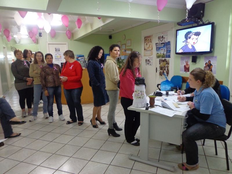 Cerca de 100 mulheres prestigiaram a programação especial alusiva ao Outubro Rosa, realizada no último sábado, dia 5, no Posto de Saúde Central. A manhã foi destinada à saúde preventiva da mulher e ao combate do câncer de colo de útero e mama. As primas Ione Silva, 54 e Andréia de Fátima Antes Gamarra, 33, aproveitaram a ocasião para realizar os exames. Andréia, que já teve casos de câncer na família, realiza anualmente uma bateria de exames de prevenção. –Cuido bastante da minha saúde porque minhas duas irmãs tiveram câncer. O melhor é prevenir–, ressaltou. Ione comentou sobre a facilidade da programação realizada no sábado. –Facilita bastante porque podemos cuidar da nossa saúde sem faltar ao trabalho–, lembrou. De acordo com a Secretária de Saúde, Maria Helena Matte, 72 mulheres realizaram o exame pré-câncer e 54 a palpação de mama. –O mais importante de tudo é a conscientização em prol da importância da prevenção, já que os casos diagnosticados no início da doença apresentam grandes chances de cura e vida saudável–, reforça a Secretária. Legenda: Cerca de 100 mulheres aproveitaram o horário especial de atendimento do Posto de Saúde Central para realizar exames de prevenção. Fotos: Maica Viviane Gebing Texto: Assessoria de Imprensa