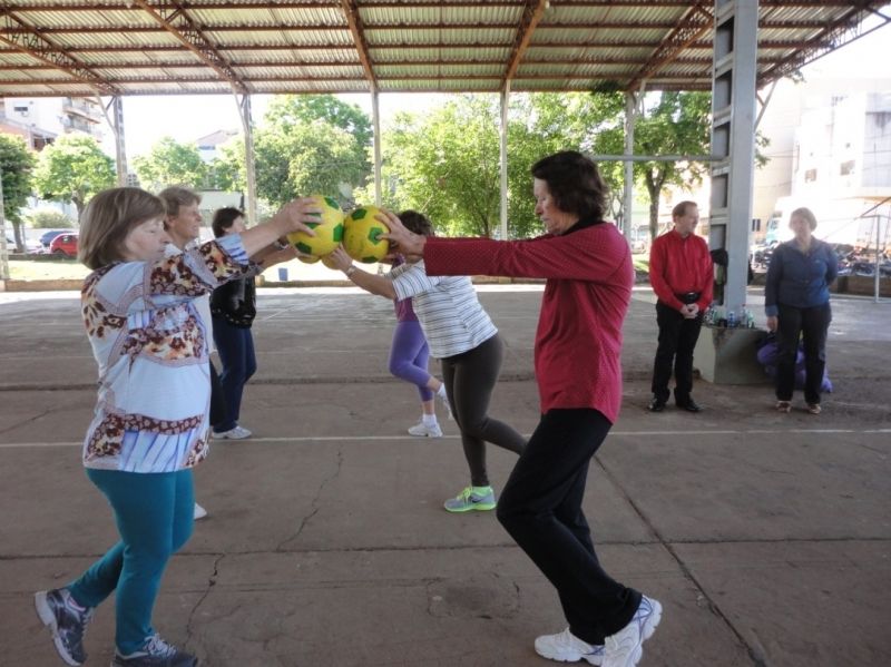 As manhãs de quarta-feira são movimentadas para o grupo de idosos que pratica exercícios físicos na área coberta localizada nos fundos da Secretaria de Educação e Cultura (SEC) - Centro. Orientados por um professor de Educação Física, o grupo encontra-se semanalmente no local, das 8h às 9h, em busca de atividades saudáveis e bem estar. A prática ocorre há mais de um ano, numa iniciativa da administração municipal, por meio do Conselho Municipal do Idoso. Além das caminhadas, são feitos exercícios de alongamento e ginástica, sempre sob os olhos atentos do professor e respeitando os limites físicos de cada participante. Além do grupo do Centro, idosos dos bairros Bela Vista e São Caetano e localidade de Palmas também participam do projeto, em diferentes dias da semana. Os principais objetivos, segundo a Coordenadora das atividades dos grupos de Terceira Idade do município, Noeli Hermann, é o incentivo à prática de esportes e à saúde preventiva da comunidade. –Além de exercitar o corpo, o projeto vêm trazendo benefícios para a mente dos participantes, que relatam muito mais disposição e ânimo com a prática das atividades–, afirma. Clacira Marlene Grebin Gasparotto, 64 anos, confirma os benefícios do projeto. Há mais de um mês participando do grupo, a moradora do bairro Barra do Forqueta vem e volta a pé para casa, esbanjando vitalidade e simpatia. –Adoro participar. Lamento não ter começado antes, mas nunca é tarde para começar. Temos que valorizar e aproveitar as oportunidades que o município oferece–, destaca Clacira, convidando demais idosos a participar do grupo. Interessados em participar podem comparecer em terças-feiras na quadra esportiva coberta do Esporte Clube Sete de Setembro, em São Caetano, em quartas-feiras na área coberta nos fundos da SEC, no Centro, e em quintas-feiras na sede do Bola Cheia – Loteamento Antares, Bela Vista, sempre às 08h. Já em Palmas, o grupo se reúne em sextas-feiras à tarde, das 14h30min às 16h. Não é necessário efetuar inscrição e a participação é gratuita. Legenda: Prefeito Sidnei Eckert e Coordenadora Neoli acompanham grupo de exercícios do Centro. Fotos: Maica Viviane Gebing Texto: Assessoria de Imprensa