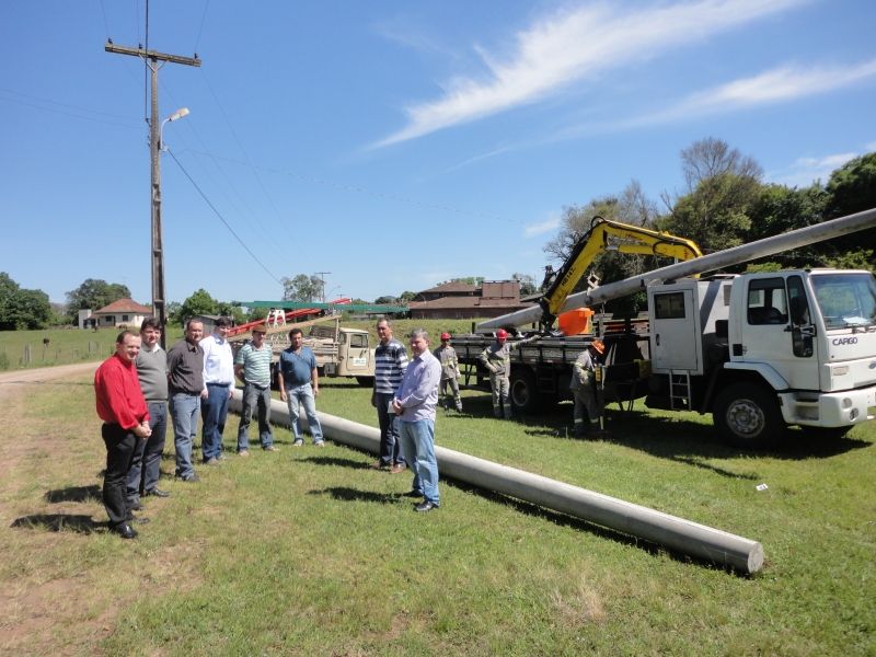 A administração municipal está investindo R$ 107.647,00 na reestruturação da rede de energia elétrica do Parque Temático de Eventos, localizado junto ao CTG Querência do Arroio do Meio. As melhorias estão sendo executadas pela empresa Colibri Empreendimentos Ltda, contratada via processo licitatório, e visam ampliar a segurança do parque municipal. De acordo com o Secretário de Planejamento, Henrique Meneghini, a obra consiste no deslocamento e otimização da rede de energia elétrica existente nos fundos do parque, para a área central do mesmo. Além disso, está sendo executada a ampliação da carga elétrica e de refletores da pista de laço, instalação de 25 luminárias e 29 postes novos, caixas metálicas com tomadas e disjuntores na parte central do parque. –O investimento no parque garante a realização do rodeio, fortalecendo o tradicionalismo no município–, afirma o Prefeito Sidnei Eckert. O patrão do CTG, Loivo Führ, confirma que a adequação é muito importante para o Parque, já que proporciona mais segurança e conforto para todos os usuários. –Estamos muito satisfeitos com as melhorias e acreditamos que elas são importantes para todo o município, já que o parque está sendo adaptado para a realização dos mais diversos eventos–, reforça. Legenda: Representantes da administração municipal e CTG Querência acompanham obras de melhorias que possibilitam a realização do rodeio no mês de novembro. Fotos: Maica Viviane Gebing Texto: Assessoria de Imprensa