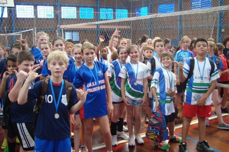 Cerca de 150 atletas participaram da integração que marcou o encerramento das Olimpíadas Estudantis 2013. A etapa mini vôlei foi realizada no Ginásio do Colégio Bom Jesus, envolvendo as categorias pré-mirim masculino e feminino de nove escolas municipais e escola particular. Por se tratar de uma integração, todos os participantes receberam medalhas e saíram vencedores. Durante o mês de outubro aconteceram as etapas mirim (dia 9) e infantil (dia 23). As Olimpíadas Estudantis são realizadas anualmente envolvendo alunos da rede municipal, estadual e particular de ensino. O principal objetivo é integrar os estudantes do ensino fundamental em atividades desportivas, incentivando o trabalho em equipe, espírito competitivo, hábitos saudáveis e disciplina. Durante o ano ocorreram ainda as etapas de Atletismo, Handebol, Jogos Inteligentes e Futsal. A competição é uma promoção da administração municipal, através da Secretaria de Educação e Cultura e Departamento de Esportes, e conta com o apoio dos professores de Educação Física e diretoras das escolas participantes. Legenda: Participantes receberam medalhas no encerramento das Olimpíadas Estudantis 2013. Fotos: Divulgação Texto: Assessoria de Imprensa