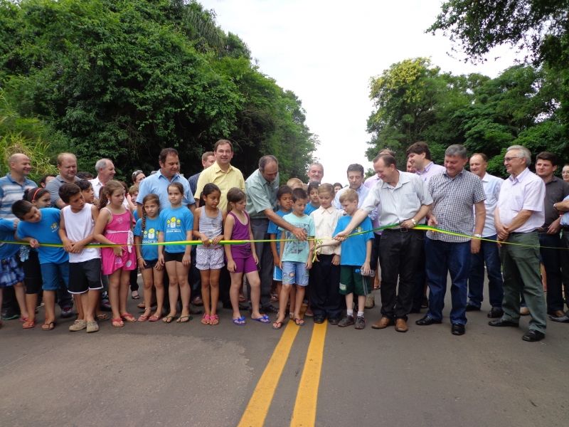 –É uma mudança da noite para o dia–. Com essa frase, Venise Leidens Quinot, 38, moradora do Vale do Arroio Grande há mais de 30 anos, define a importância que o asfalto executado em frente a sua casa trouxe a sua rotina. Além de moradora do local, Venise também é empresária do ramo alimentício e sentiu na pele a diferença de produzir bolachas em meio à poeira e após a concretização do asfalto. Nesse clima de conquista, Venise, outros moradores do Vale do Arroio Grande, alunos e professores da Escola da localidade – Duque de Caxias e autoridades locais e regionais participaram da entrega simbólica do asfalto executado na estrada geral Arroio Grande, no trecho que inicia no bairro Bela Vista e segue até alguns metros após o comercial Linck, no entroncamento com Dona Rita. Ao todo, foram 2,8km de extensão de pavimentação asfáltica, antecedido por serviços de terraplenagem, drenagem pluvial e demais adaptações necessárias para a execução da obra. O investimento soma R$ 2,3 milhões, provenientes de recursos próprios do município, somado a empréstimo junto ao Badesul e emenda parlamentar do então Deputado Federal Mendes Ribeiro Filho. A obra iniciou em 2011 e foi executada em três trechos, sendo finalizada recentemente. Após apresentação musical e encenação teatral dos alunos da escola, o Presidente da Câmara de Vereadores e morador local, Romano Kunzler e o Prefeito Sidnei Eckert pronunciaram-se, resgatando o histórico das primeiras mobilizações em prol do asfalto na comunidade e ressaltando a importância da obra para a aproximação da infraestrutura urbana com a localidade. –Procuramos alternativas para trazer o asfalto para o Vale do Arroio Grande. Ainda está longe do que a comunidade quer e merece, mas vamos seguir na batalha para melhorar ainda mais a situação dos moradores locais–, afirmou Eckert. Apesar da saúde debilitada, em função de um longo tratamento contra o câncer, o Deputado Mendes Ribeiro Filho participou do ato, reforçando o carinho que tem pelo município. –Eu sou testemunha do esforço do Prefeito Sidnei e de sua equipe de trabalho para a concretização dessa obra. É o sonho de muita gente realizado e isso se transforma na nossa realização também–, declarou. O desenlace conjunto da fita inaugural foi feito com todos os presentes, marcando o encerramento do ato simbólico de entrega do asfalto à comunidade. O evento fez parte da programação especial dos 79 anos de aniversário do município. Legenda: Autoridades, alunos, professores e comunidade local fizeram o desenlace da fita inaugural. Fotos: Maica Viviane Gebing Texto: Assessoria de Imprensa
