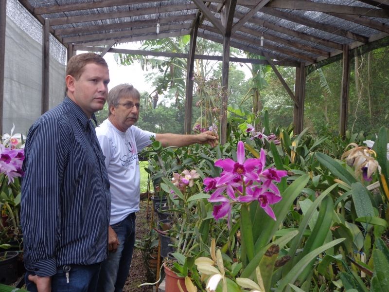 A manhã deste sábado, dia 14, será movimentada na Praça Flores da Cunha e Rua de Eventos. Quatro programações diferentes estão sendo preparadas para a ocasião, a partir das 8h - Feira do Produtor e Artesanato, 4ª Campanha de Descarte Ambientalmente Correto e 1ª Mostra de Orquídeas. Como ocorre semanalmente, a Feira do Produtor oferecerá cerca de 50 variedades de frutas, verduras e produtos coloniais, oriundos diretamente dos produtores rurais do município. As artesãs Arroio do Meio em Arte participam da programação, comercializando trabalhos na temática natalina, desde enfeites a utilitários, em diferentes técnicas como patchwork, crochê, bordado e pintura. Na sua 4ª edição, das quais, a terceira neste ano, a Campanha de Descarte Ambientalmente Correto terá pontos de recolhimento de medicamentos vencidos, eletroeletrônicos, sucatas e óleo de cozinha. Já a Mostra de Orquídeas, realizada pela primeira vez no município, traz a beleza e a diversidade da flor ao alcance da comunidade. O evento é promovido pela administração municipal, por meio das Secretarias da Agricultura, Saúde, Educação e Departamento do Meio Ambiente, com apoio dos produtores rurais e artesãos de Arroio do Meio, empresas M&M Coleta de Eletrônicos, Herrmann Recicladora, Ecoóleo e Ambientar e orquidófilos de Arroio do Meio e Lajeado. Saiba mais sobre a 1ª Mostra de Orquídeas: A mostra está sendo organizada por orquidófilos de Arroio do Meio e Lajeado, com participação especial dos irmãos Valdemar e Hildor Rauber, que criam orquídeas há cerca de dez anos no Distrito de Arroio Grande. No local, possuem mais de 500 plantas, divididas em 450 espécies oriundas de diversas regiões do país e do mundo. Mecânico durante a semana, Valdemar dedica seus finais de semana para cuidar das plantas e participar de mostras e feiras por todo o Estado. –As orquídeas deveriam ser receitadas para tratar doenças como o stress. A gente se apaixona já no primeiro contato com elas–, declara. Mais de 100 espécies estarão expostas na Mostra. Haverá comercialização de plantas no local. Legenda: Orquidófilo Valdemar Rauber e Secretário da Agricultura Paulo Heck estão na organização da 1ª Mostra de Orquídeas, junto a demais criadores da Região. Fotos: Maica Viviane Gebing Texto: Assessoria de Imprensa