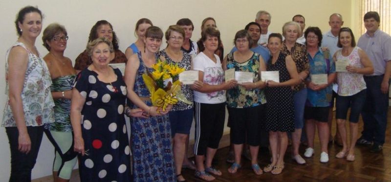 Após oito encontros semanais, realizados ao longo de dois meses, num total de 12 horas de qualificação, 24 alunos concluíram o curso do projeto de Inclusão Digital do Telecentro Comunitário. A entrega dos certificados foi realizada no final do mês de dezembro, na presença dos formandos, Coordenador das Secretarias, Klaus Werner Schnack, Secretária de Educação e Cultura, Eluise Hammes e monitora do Telecentro, Nicole Höfle Rhoden. O Telecentro Comunitário está localizado junto à Secretaria de Educação e Cultura e fica disponível à comunidade diariamente, no horário das 8h às 11h45min e das 13h30min às 16h45min, com exceção de terças e quintas-feiras pela manhã. Os cursos de Inclusão Digital são realizados periodicamente, mediante inscrição gratuita, direcionados ao público adulto. Durante as aulas são repassadas orientações básicas de manuseio com o computador, edição de textos e internet. Interessados em participar da nova turma que inicia em fevereiro, podem se inscrever durante o mês de janeiro na Secretaria. Maiores informações pelo fone 3716 2887, com Nicole. Legenda: Turma de 24 alunos formou-se no mês de dezembro. Fotos: Divulgação Texto: Assessoria de Imprensa
