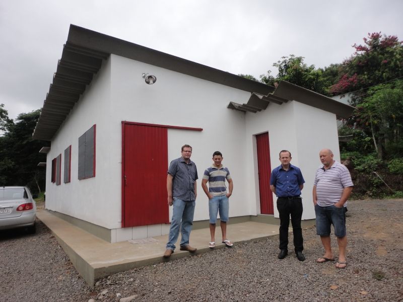 Na última semana de 2013, a administração municipal repassou um incentivo financeiro no valor de R$ 17.220,00 para a agroindústria de Ronei Gilberto Hendges, por meio do Programa Municipal de Incentivos à Indústria Familiar. O recurso será utilizado para a edificação de um abatedouro de aves coloniais na localidade de Palmas. O Programa Municipal de Incentivo à Agroindústria Familiar é baseado na lei 3.017/2011. Prevê incentivos para construção, reforma ou ampliação de prédios num percentual de até 30% do orçamento do mesmo. O programa tem o objetivo de agregar valor às matérias-primas da agropecuária, aumentar a renda e a qualidade de vida dos agricultores. A agroindústria de Hendges deve ser inaugurada oficialmente no primeiro semestre do ano. A projeção estimada é de duas mil aves por mês e o investimento total no empreendimento é superior a R$ 200 mil. O Prefeito Sidnei Eckert reforça a importância do apoio aos empreendimentos para o desenvolvimento das comunidades, bairros e município. –O município precisa dos pequenos, médios e grandes para desenvolver. Isso fomenta o crescimento do município como um todo, fortalecendo cada comunidade através da geração de emprego e renda das famílias–, diz o Prefeito. Legenda: Prefeito Sidnei Eckert e Secretário Paulo Heck visitaram as instalações da agroindústria Hendges. Fotos: Maica Viviane Gebing Texto: Assessoria de Imprensa