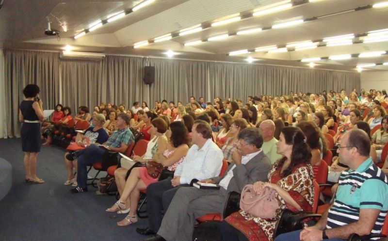 Cerca de dois mil alunos da rede municipal de ensino retornam às salas de aula na próxima quinta-feira, dia 20. Antes disso, 170 professores e as equipes diretivas das 13 Escolas Municipais de Ensino Fundamental (EMEFs) preparam-se para recebê-los, com atividades internas de planejamento e palestra de acolhimento que iniciam na segunda-feira, dia 17. Nos dias 17 e 19, os professores realizam atividades de planejamento do ano letivo nas escolas. Para o dia 18, a Secretaria de Educação e Cultura organiza uma programação especial de abertura oficial do ano letivo. O evento inicia às 8h, no auditório do prédio 7 da Univates, em Lajeado. Na parte da manhã, a Doutora em Educação, professora Gilca Maria Kortmann, palestrará sobre o tema –Escola, família e comunidade: vínculos de afeto e sua relação com a aprendizagem–. Na parte da tarde, o Consultor em Dependência Química, Eduardo Kaufmann, abordará a temática da drogadição. De acordo com a Secretária de Educação e Cultura, Eluise Hammes, 2014 será um ano para intensificar os projetos educacionais em andamento no município. Como destaque, Eluise cita o projeto desenvolvido pela Secretaria de Educação e Cultura, em parceria com escolas e família, intitulado –Escola e Família – de mãos dadas pela Educação–. Com objetivo de fortalecer a relação entre Secretaria, escolas, pais, alunos e comunidade, o projeto foi lançado no início de 2013 e contou com várias ações durante o ano que passou. Outros destaques ficam por conta do Programa de Turno Integral Mais Educação – que contempla seis escolas, localizadas nos bairros São Caetano, Bela Vista, Barra do Forqueta, Rui Barbosa, Novo Horizonte e Distrito de Palmas, com atividades em turno oposto ao período escolar; Programa Escola da Terra – que beneficia cinco escolas da área rural, com atividades focadas na realidade local e Pacto Nacional pela alfabetização na Idade Certa (PNAIC), cujo objetivo é assegurar a alfabetização de todas as crianças até os oito anos de idade, ao final do 3º ano do ensino fundamental. Saiba mais sobre a Educação de Arroio do Meio: **1.950 alunos matriculados em 13 Escolas Municipais de Ensino Fundamental (EMEFs); **770 crianças de quatro meses a seis anos de idade matriculadas nas 8 Escolas Comunitárias de Educação Infantil (ECEIs); **370 alunos (1º a 4º ano - Ensino Fundamental), de seis EMEFs (Bela Vista, Barra do Forqueta, São Caetano, Princesa Isabel, Tancredo Neves, Itororó) participam do Programa de turno integral Mais Educação, realizado em parceria com o Governo Federal; **200 alunos (Educação Infantil ao 5º ano - Ensino Fundamental), de cinco escolas da área rural do município (Afonso Celso, Dona Rita, Duque de Caxias, Getúlio Vargas e Itororó), participam do programa em parceria com o Governo Federal – Escola da Terra. O Programa tem como objetivo fortalecer as escolas do campo, oferecer capacitação e aperfeiçoamento a seus professores, despertar lideranças no meio rural e melhorar a infraestrutura destas escolas. Legenda: Abertura oficial do ano letivo de 2014 será realizada no auditório do prédio 7 da Univates, pelo segundo ano consecutivo. Fotos: Maica Viviane Gebing/ Arquivo Texto: Assessoria de Imprensa