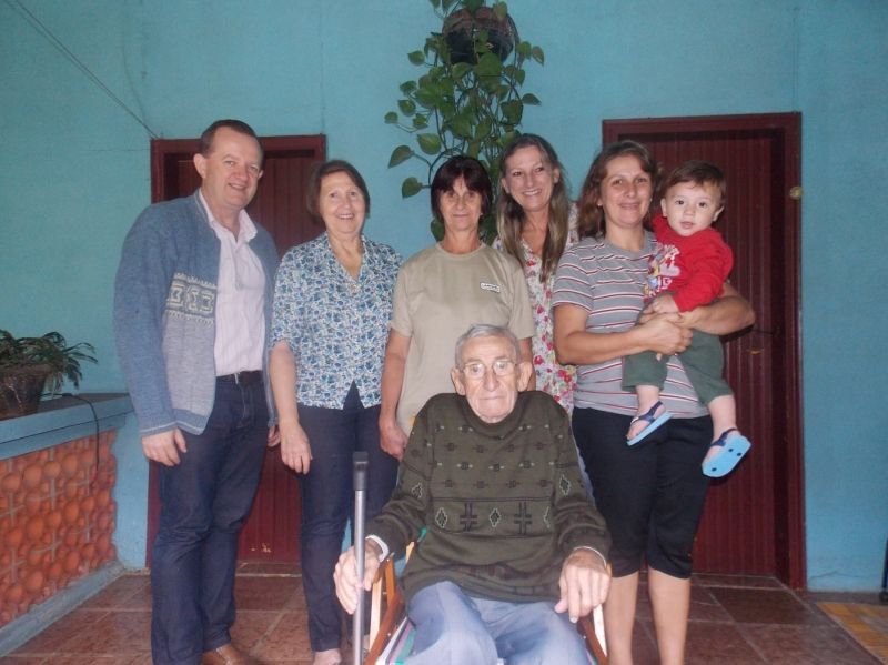O final de semana será de comemoração para a família Fischer, de Picada Café, interior de Arroio do Meio. No domingo, dia 16, o patriarca da família, Sr. João Almiro Fischer, completa 96 anos de idade, esbanjando saúde, brilho nos olhos e disposição. Com cinco filhos, 18 netos e 24 bisnetos, Fischer é nascido, criado e enraizado no local. Viúvo há 33 anos, o simpático velhinho é o único irmão vivo entre 13. Morando com a filha e o genro, tem a companhia diária da neta e do bisneto que moram no mesmo terreno, o que lhe proporciona um sorriso rejuvenescedor. A filha responsável pelos cuidados de Fischer, Liana, afirma que o pai vai ao médico de três a quatro vezes por ano, apenas para exames de rotina, e que toma remédios para circulação de sangue, osteoporose e coração, comuns para a avançada idade. A alimentação segue o cardápio servido para toda a família, sem restrições ou pratos diferenciados. Agricultor, Sr. João afirma que capinou até os 85 anos de idade para o sustento da família. Cidadão consciente, fez questão de garantir seu voto na última eleição municipal. Vaidoso assumido, arrumou-se impecavelmente para receber a visita do Prefeito Sidnei Eckert, Secretária de Saúde Helena Matte e Coordenadora dos Idosos, Noely Herrmann, na última semana. Numa conversa em dialeto alemão predominante, Fischer mostrou que a sua memória segue ativa, ao lembrar o ano da construção da casa onde vive, além de diversas outras histórias da juventude. O patriarca afirmou que sempre trabalhou muito, mas sem cometer exageros e deu conselhos fundamentais quando questionado sobre o rumo da humanidade. –Antigamente as pessoas eram mais simples, não davam tanta importância para o luxo. Hoje em dia tem muita ganância e inveja, um quer ter mais do que o outro, por isso que tem tanta gente em depressão–, reflete. Eckert destacou a vitalidade do idoso. –O Sr. João é um exemplo e um orgulho para Arroio do Meio. Ele vem nos mostrar que é possível envelhecer com saúde e qualidade de vida, tendo uma vida simples, sem exageros e superficialidades–, parabeniza. O Conselho Municipal do Idoso deixa o convite para que outras famílias que tenham idosos nessa faixa etária entrem em contato pelo fone 37161166 ramal 303, ou diretamente no sub solo da Prefeitura Municipal, com Noeli. O objetivo é realizar um levantamento, agendar visitas e mostrar outras exemplos da Terceira Idade do município. Legenda: Prefeito Sidnei Eckert, Secretária Helena e Coordenadora dos Idosos Noely, junto ao Sr. João, filha, neta e bisneto do idoso. Fotos: Maica Viviane Gebing Texto: Assessoria de Imprensa