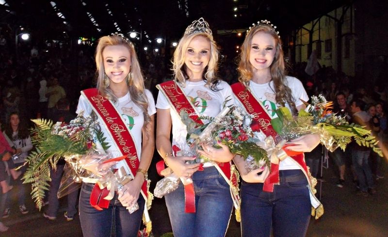 Cerca de cinco mil pessoas lotaram a Rua de Eventos e a Praça Flores da Cunha no entardecer do último domingo, dia 13, para assistir a Escolha do Casal da Melhor Idade e da nova corte de Soberanas do Município, numa promoção da Prefeitura Municipal. O evento contou ainda com os shows das bandas Os Tropicais e La Montanara, abrindo oficialmente a programação dos 80 anos de Arroio do Meio. A festa iniciou às 17h, com o desfile de 11 casais de idosos, representando os grupos da Terceira Idade do município. Após desfile individual e coletivo, o casal Ditmar e Laidy Immich, do grupo Cantar e Sorrir, de Forqueta, levou o título de Rei e Rainha da Melhor Idade, de acordo com a soma de notas apuradas por cinco jurados. Além de faixa e coroa, o casal receberá premiação em dinheiro. Após o desfile, a festa seguiu com a banda Os Tropicais, que animou as torcidas dos grupos presentes. Às 19h iniciou o desfile das 16 candidatas à Rainha e Princesas do município. Numa tarefa árdua, o corpo de jurados formado pela Miss Brasil 2012, Gabriela Markus, Designer de Moda e ex Rainha da Expovale, Josiane da Costa Schmitt, Colunista Xyko Barzotto, Secretária do Planejamento de Lajeado, Marta Peixoto e Delegado João Sellig, avaliaram os quesitos beleza, simpatia e elegância na passarela. A avaliação foi somada à nota do teste cultural aplicado no sábado pela manhã, testando conhecimentos básicos das candidatas sobre a história do município e atualidades sobre a Região e o Estado. Aline Dummel Conrad foi eleita a nova Rainha de Arroio do Meio. Com ela, as princesas Tainá Guillante e Vanessa Schneider, formam a nova corte de Soberanas do município. Todas as candidatas receberam brindes dos parceiros Affinitá, Aquarius/Exclusiva Hering, calçados Bottero e Girando Sol. As vencedoras foram premiadas com faixa, coroa e premiação em dinheiro. Após o resultado, a festa seguiu com a banda La Montanara. Um pouco mais sobre a corte... A Rainha Aline tem 23 anos, é Pós Graduada em Supervisão Escolar e mora na Barra do Forqueta. A 1ª Princesa Tainá tem 18 anos, cursa a faculdade de Engenharia Química e mora em São Caetano. A 2ª Princesa Vanessa tem 20 anos, cursa Pedagogia e reside em Forqueta Baixa. Legenda: Aline, Tainá e Vanessa formam a nova corte de soberanas de Arroio do Meio. Fotos: Maica Viviane Gebing Texto: Assessoria de Imprensa