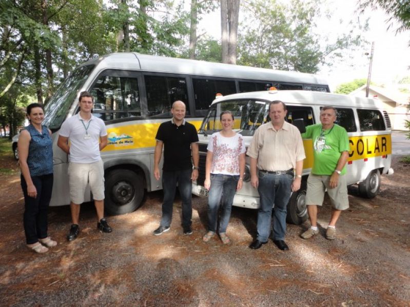 Com o retorno do ano letivo, uma das prioridades da Secretaria de Educação e Cultura é oferecer transporte seguro e de qualidade para os alunos do município. Para isso, a administração municipal providenciou, ainda no final de 2011, a substituição dos dois veículos de transporte escolar que já vinham sendo utilizados há cerca de 10 anos, promovendo a segurança dos alunos usuários do transporte escolar. A kombi adquirida em maio de 2011, vem sendo utilizada desde então, para transportar os alunos do Ensino Fundamental para as escolas do município e alunos para atendimento na APAE, em Lajeado. O veículo tem capacidade para transportar 15 alunos por viagem e trafega cerca de 200km diariamente. O motorista Alvário Führ, responsável pelo transporte há 10 anos, afirma que a nova kombi proporciona mais segurança para os passageiros e mais economia para o município. O outro veículo escolar, o micro-ônibus com capacidade para 27 passageiros, foi substituído por um modelo mais novo, o que, segundo o motorista responsável pelo veículo, Tiago Böhn, proporcionou satisfação e mais conforto aos usuários. O município investe mensalmente R$ 85 mil no transporte escolar. Cerca de dois mil alunos usufruem deste serviço para se locomoverem às instituições de ensino. A maior parte do transporte é feito através de quatro empresas de ônibus, mais cinco vans terceirizadas, envolvendo cerca de 20 veículos no transporte diário dos alunos para as três redes de ensino (escolas municipais, Estadual e particular). Segundo a Secretária de Educação e Cultura, Eluise Hammes, a principal preocupação da administração municipal é garantir a segurança e comodidade dos alunos que utilizam o serviço. Periodicamente é realizada a revisão de todos os veículos que fazem o transporte escolar do município. Legenda: Prefeito Sidnei Eckert, motoristas Tiago Böhn e Alvário Führ, Secretária de Educação Eluise Hammes, responsável pelo transporte escolar, Luise Nos e responsável pelo setor de compras, Marcio Zimmer, junto aos veículos de transporte escolar do município. Fotos: Maica Viviane Gebing Texto: Assessoria de Imprensa