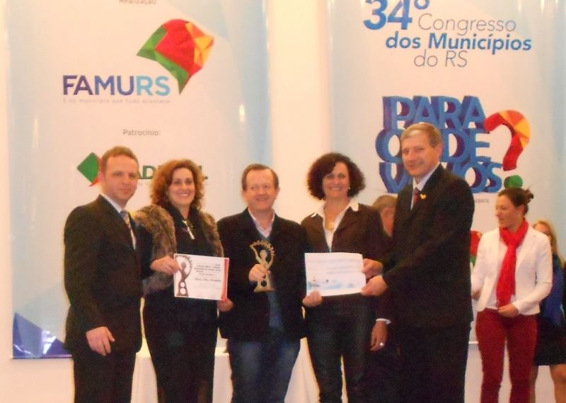 Arroio do Meio foi premiado com o Troféu Cultura Famurs/Codic, na Categoria Cinema, Vídeo e Fotografia, com o projeto Mostra Estudantil de Curtas Arroio-Meenses – MECA. O evento aconteceu na última quarta-feira, 30, no Hotel Plaza São Rafael, em Porto Alegre, junto ao 21º Fórum dos Dirigentes Municipais de Cultura do Rio Grande do Sul. Este é o terceiro prêmio cultural que o município recebe, sendo reconhecido anteriormente por projetos da Casa do Museu (2010) e Cineclube Real (2012). Esta é a quarta edição do Prêmio que reconhece ações culturais desenvolvidas pelas administrações municipais que tenham implantado ou executado projetos de estímulo ao desenvolvimento da cultura local ou regional. Participaram trabalhos desenvolvidos entre janeiro de 2012 e abril de 2014 nos segmentos de artes plásticas; dança; teatro e circo; Cinema, Vídeo e fotografia; Livro, leitura e Literatura; Museus, Patrimônio e Memória; Música e Cultura Popular, Étnica e Folclore. Criatividade e inovação, a abrangência e o impacto social e a continuidade da ação cultural foram quesitos avaliados pela comissão julgadora. O reconhecimento veio por meio de troféu, certificado e premiação no valor de R$ 2.500,00. Sobre a Mostra Estudantil de Curtas Arroio-meenses - MECA: A MECA foi desenvolvida no município nos anos de 2012 e 2013. Ao todo foram 11 curta-metragens produzidos, envolvendo alunos e professores das Escolas Municipais de Ensino Fundamental (EMEFs), que tiveram encontros de formação com profissionais da área antes de iniciar a produção. Nas duas edições o tema abordado foi a cultura gaúcha, com enfoque local no último. Cerca de 110 atores locais participaram da gravação dos curtas, que foram exibidos para mais de cinco mil pessoas, incluindo a comunidade escolar, grupos de idosos e comunidade em geral, que assistiram aos filmes durante a Feira do Livro (Culturarte), realizada anualmente em setembro, além de sessões no Cineclube, em escolas e demais espaços públicos. Legenda: Prefeito Sidnei Eckert, Secretária de Educação e Cultura Eluise Hammes e Dirigente Municipal de Cultura, Angelica Diefenthaler receberam o prêmio ontem. Fotos: Divulgação Texto: Assessoria de Imprensa
